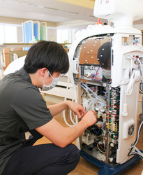 病院で使用されている人工呼吸器、輸液ポンプ、シリンジポンプ、酸素流量計、血圧計、補助循環装置、保育器などの機器の定期点検・消耗品の交換などの保守管理などをおこなっています。