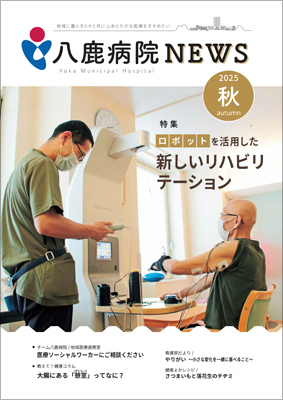 2025年秋号 ●特集 ロボットを活用した新しいリハビリテーション ●チーム八鹿病院 医療ソーシャルワーカーにご相談ください(地域医療連携室) ●教えて!健康コラム 大腸にある「憩室」ってなに? ●看護部だより やりがい~小さな変化を一緒に喜べること~ ●健康よかレシピ さつまいもと落花生のチヂミ