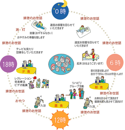 一定期間入所していただき、医療ケア・リハビリテーション・レクリエーション・日常生活のケアを提供しています。