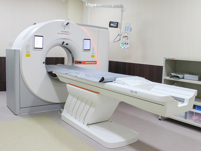 PET(陽電子放出断層撮影)とCTが一体型となった装置で、一度の検査でPET画像とCT画像を得ることができ、そのふたつを融合させることで、病変の存在や広がりをより正確に調べることができます。 |