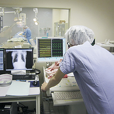 不整脈など心臓の調子の悪い方などに使用される機器(ペースメーカー)の体内埋め込み時の心臓内電位などの測定機器や、ペースメーカーの定期点検チェックに使用される機器の操作をおこなっています。
